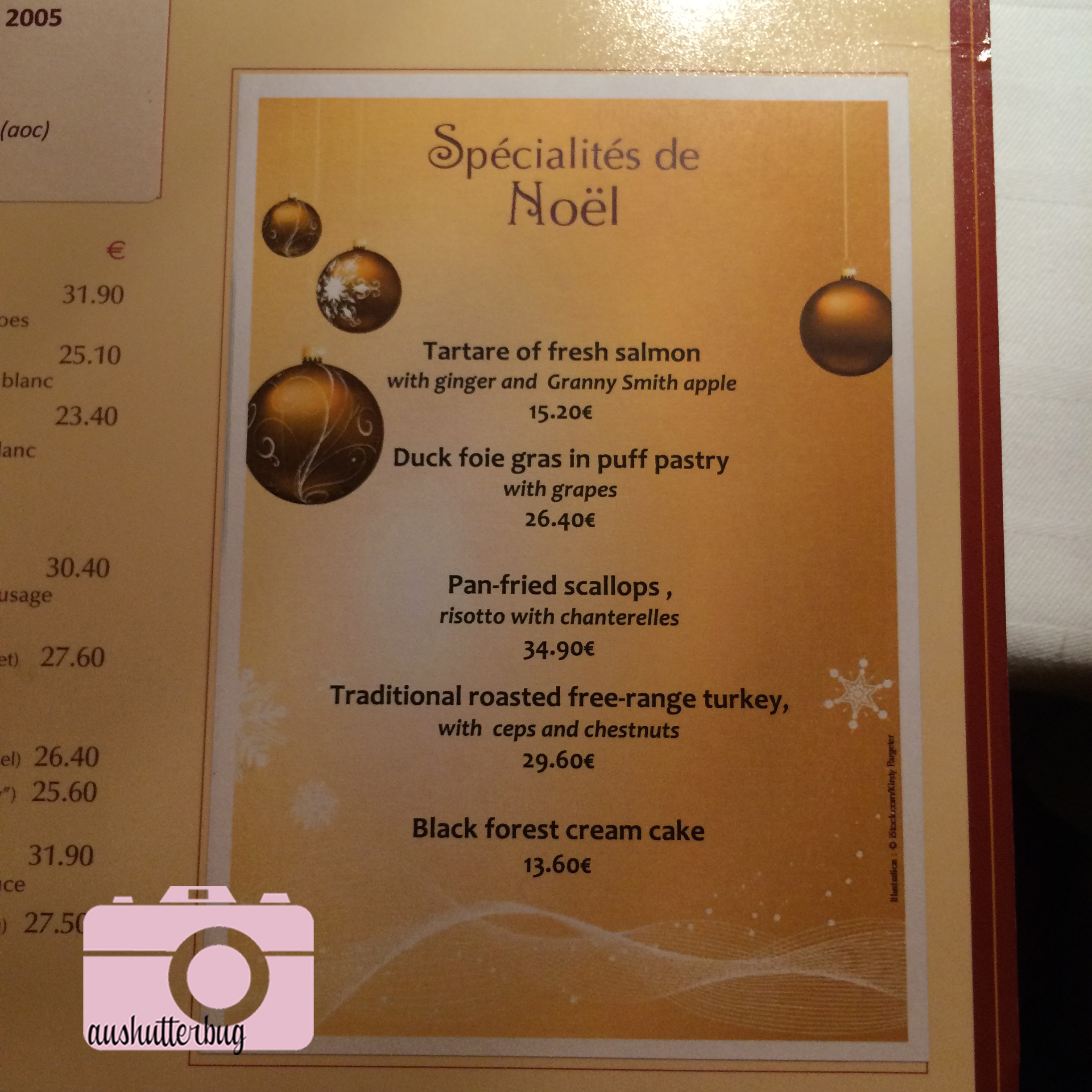 15640837343_83d30fa536_o Previous Next Published January 12, 2015 at 2448 × 2448 in First Trip to Europe, Day 3 – Christmas Day The Christmas menu at Chez Jenny